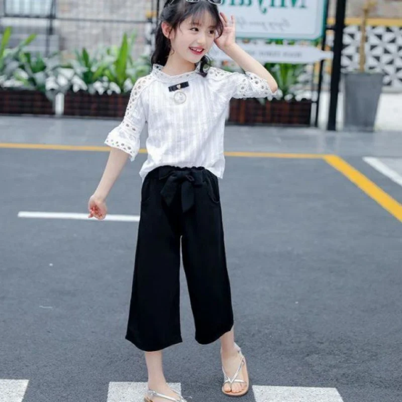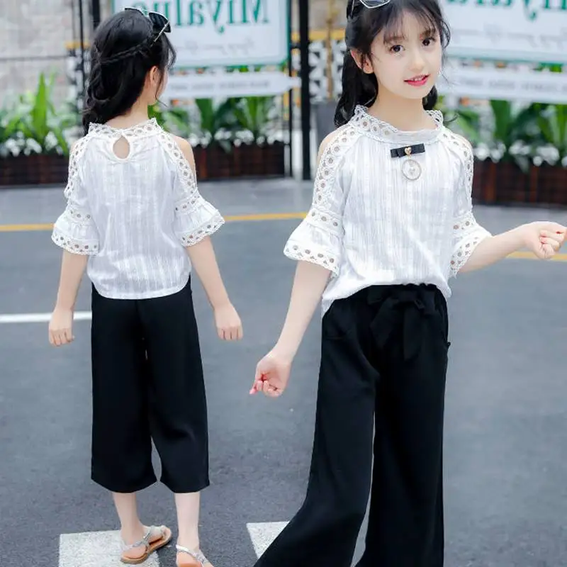 Compare prices for 2019 Baby Girls Summer Princess Clothes Set Top+Wide Leg Pants 2 Pcs Set Kid School Lovely Party Pe
