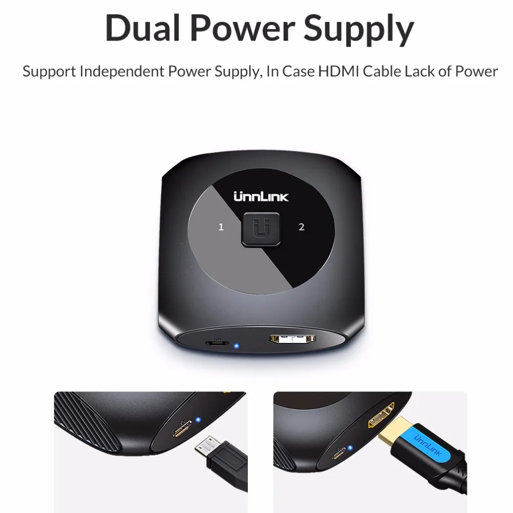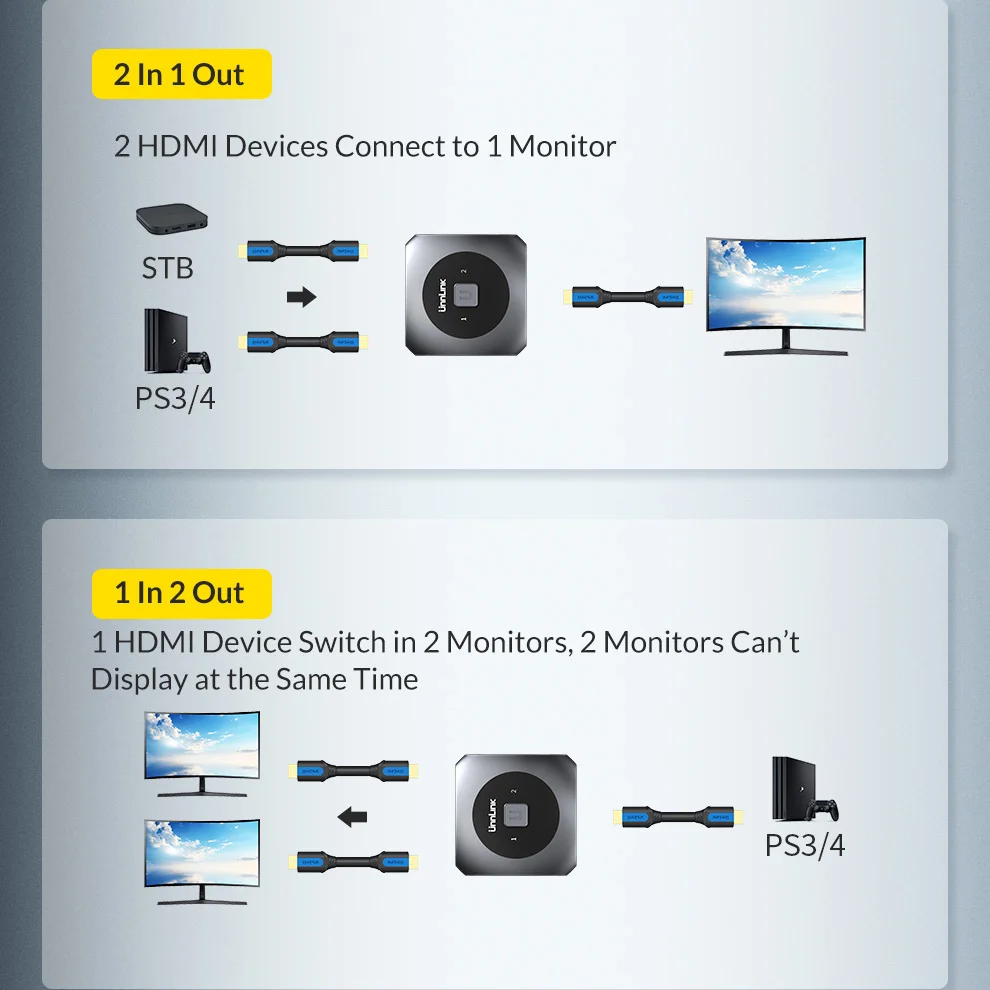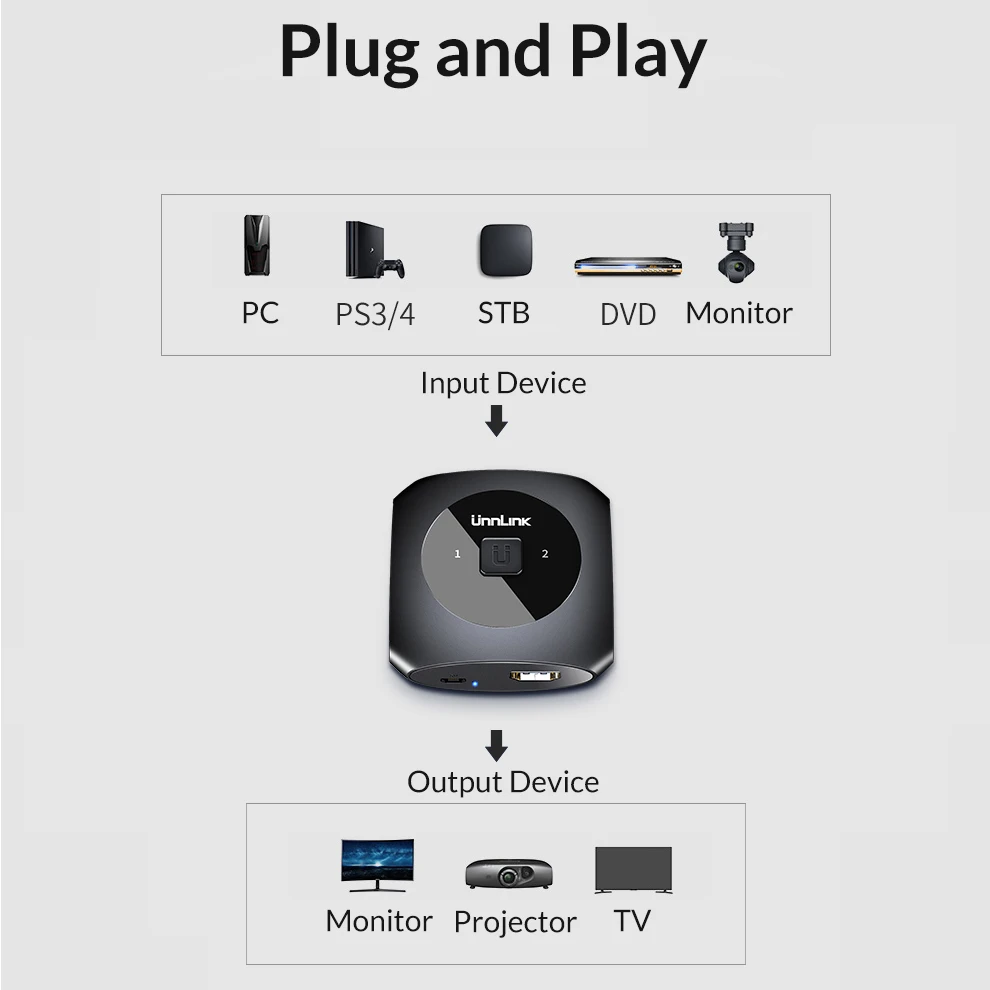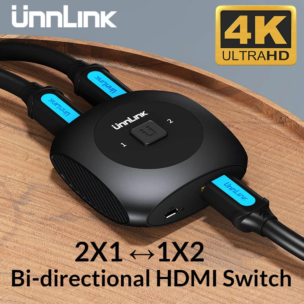 You want Unnlink HDMI Switch Splitter Bi-directional Switcher 2X1/1X2 UHD4K Adapter for led tv mi box comput?