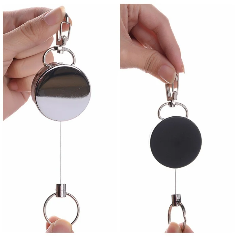 On sale 1PC Anti-theft Stretch Keychain Metal+plastic Easy Pull Buckle 4 High Resilient Silver Telescopic R
