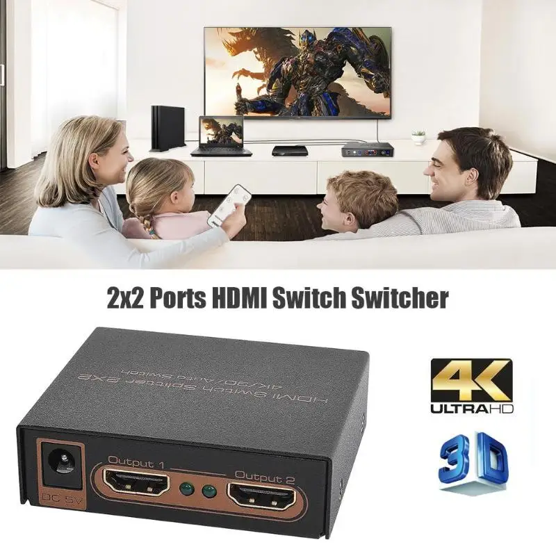 Discounted ALLOYSEED 2x2 HDMI Switch Box 2 Input 2 Output HDMI Switcher Splitter Adapter Support 4K 3D 1080P F